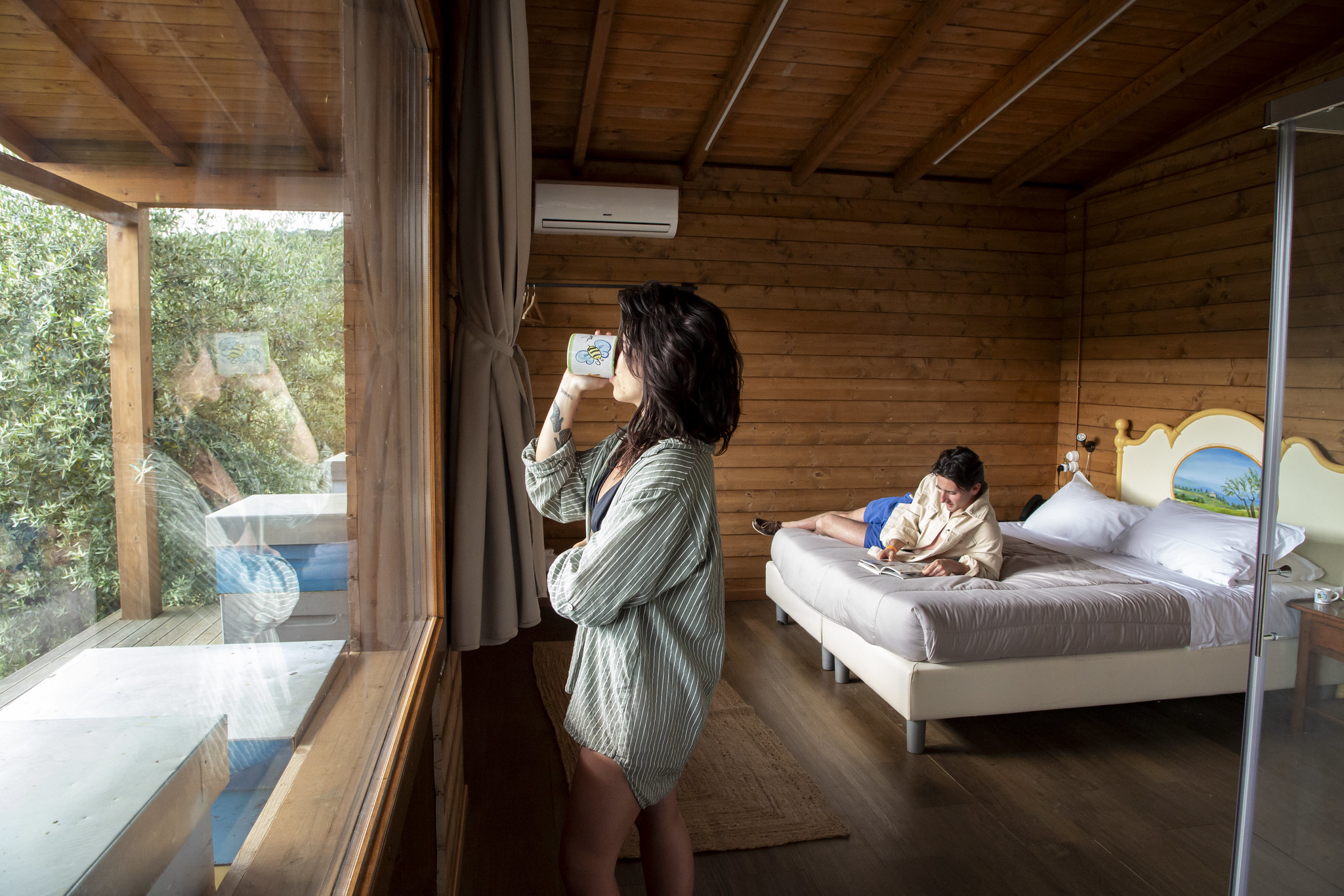 Situata in una posizione esclusiva, questa accogliente casetta in legno è immersa nella natura e ispirata all’affascinante mondo delle api. I toni caldi e avvolgenti degli arredi richiamano la luce dorata della campagna toscana, mentre le ampie vetrate offrono una vista mozzafiato sul paesaggio circostante.